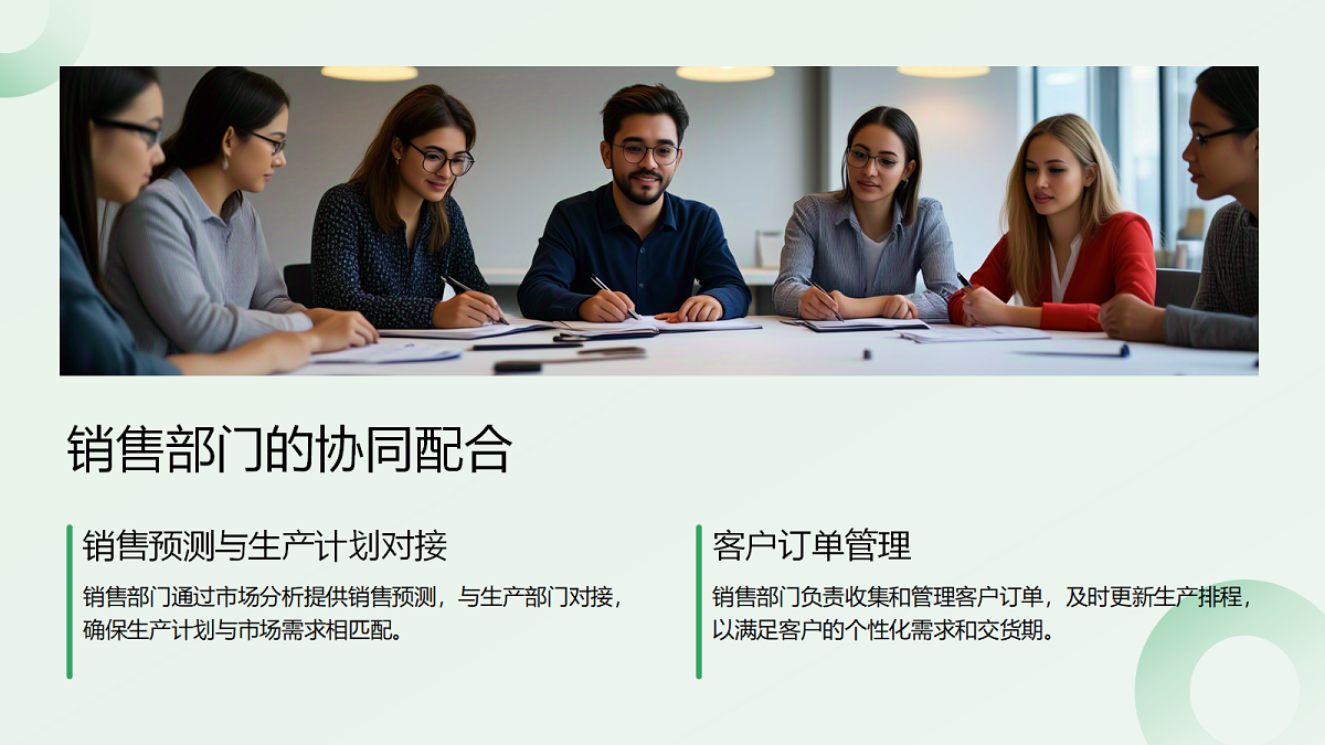 การดำเนินการจัดตารางการผลิตที่สมดุลไม่สามารถแยกออกจากความร่วมมือการทำงานร่วมกันของแผนกต่างๆ เช่น ฝ่ายขาย วิศวกรรม การจัดการห่วงโซ่อุปทาน การจัดซื้อ การผลิต และโลจิสติกส์ ความร่วมมือนี้เป็นตรรกะพื้นฐานของการตอบสนองอย่างรวดเร็ว และแกนหลักของการตอบสนองอย่างรวดเร็วอยู่ที่การตอบรับข้อมูลและการสื่อสาร ตลอดจนการปรับปรุงวงจร PDCA (Plan-Do-Check-Act) ในเชิงลึกอย่างต่อเนื่อง