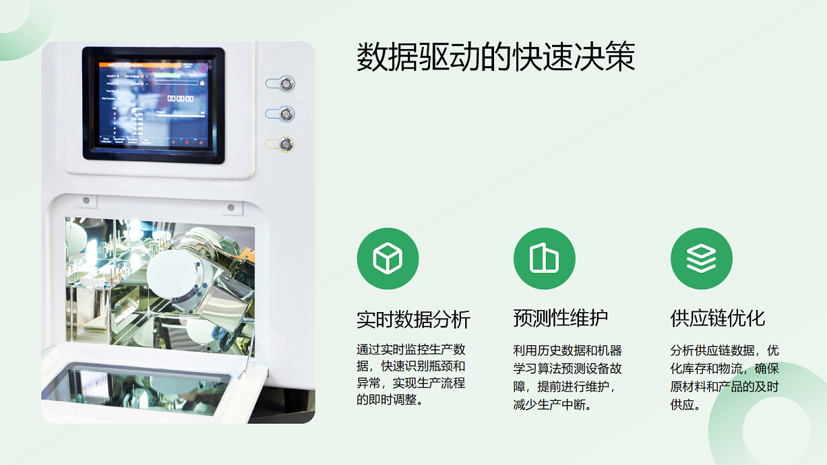 • การตัดสินใจอย่างรวดเร็วโดยขับเคลื่อนด้วยข้อมูล: ตัดสินใจตอบสนองอย่างรวดเร็วผ่านการวิเคราะห์ข้อมูลแบบเรียลไทม์ การบำรุงรักษาเชิงคาดการณ์ และการเพิ่มประสิทธิภาพห่วงโซ่อุปทาน